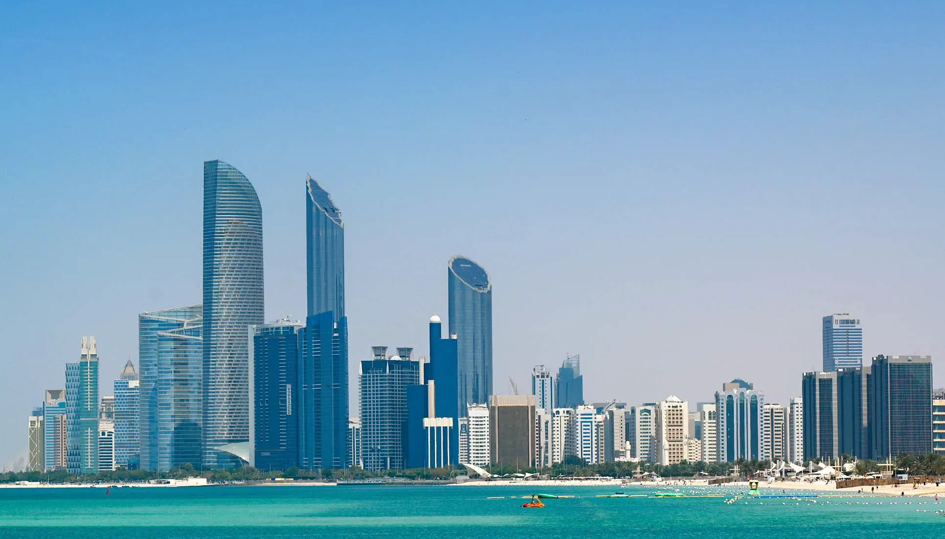 partial views of the expansive sea and the Abu Dhabi skyline, along with seamless